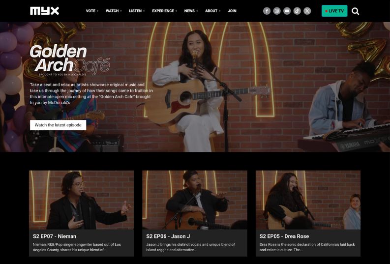 Golden Arch Café was a culturally driven branded content campaign produced by ABS-CBN Global’s MYX Global in partnership with McDonald’s, celebrating Asian American and Pacific Islander talent through music-driven storytelling and original content.