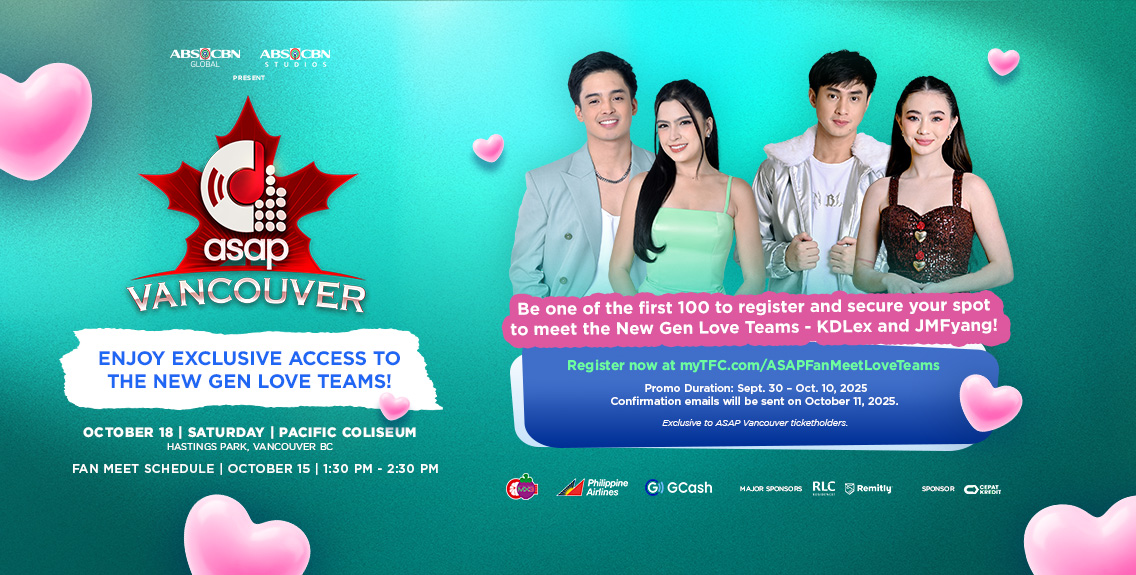 HOW TO ENTER 1. Ensure you are a holder of a valid ASAP Vancouver 2025 concert ticket. 2. Visit the official TFC registration page and complete the registration form on myTFC.com/ASAPFanMeetLoveTeams 3. Required fields on the form are: a. Full name (matching a valid government ID) b. Email address c. Contact number d. City and Province/ State of Residence e. Short answer to the Q: Which NEW GEN LOVE TEAM are you excited to see in ASAP Vancouver 4. Upload a photo / screenshot of your ASAP Vancouver 2025 ticket 5. Each participant must register individually using their own concert ticket. Registrations on behalf of others are not allowed. One ticket corresponds to one registration only. Companions are not allowed |
