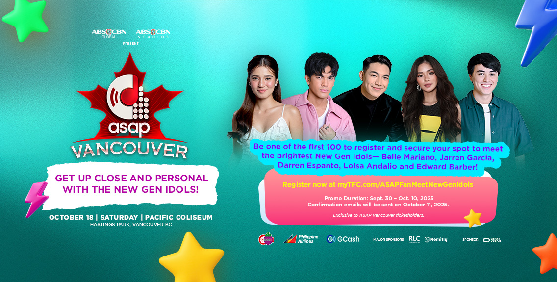 | HOW TO ENTER 1. Ensure you are a holder of a valid ASAP Vancouver 2025 concert ticket. 2. Visit the official TFC registration page and complete the registration form on myTFC.com/ASAPFanMeetNewGenIdols 3. Required fields on the form are: a. Full name (matching a valid government ID) b. Email address c. Contact number d. City and Province/ State of Residence e. Short answer to the Q: Which NEW GEN IDOL are you excited to see in ASAP Vancouver 4. Upload a photo / screenshot of your ASAP Vancouver 2025 ticket 5. Each participant must register individually using their own concert ticket. Registrations on behalf of others are not allowed. One ticket corresponds to one registration only. Companions are not allowed |