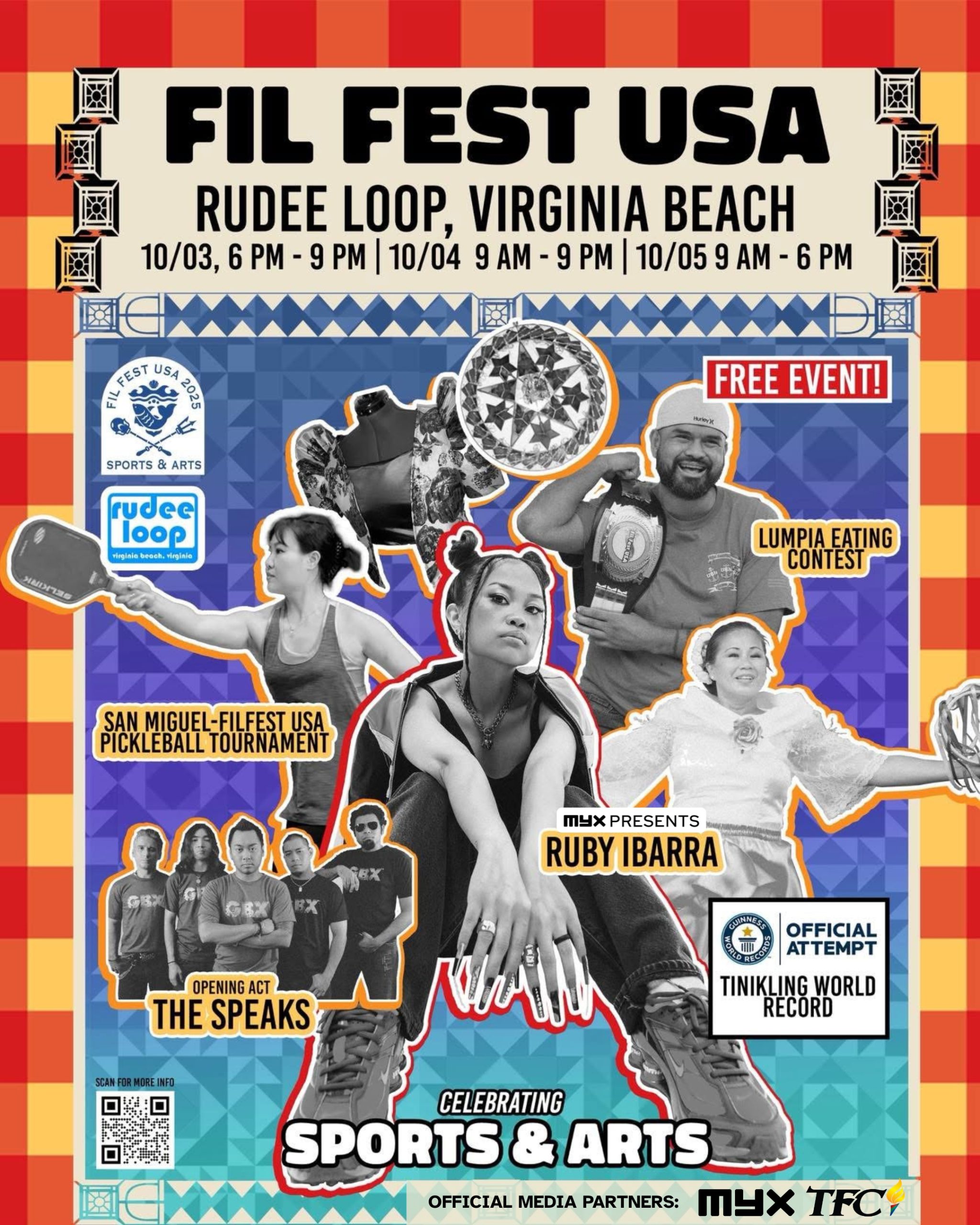 The three-day festival will take place at Rudee Loop Park. Fil Fest USA will offer everything from traditional Filipino cuisine and desserts to handmade crafts, jewelry, cultural items, and more. The 2025 theme, Sports and Arts, will highlight the creativity, discipline, and spirit of the local Filipino community, including special recognition of local gyms, athletes and coaches who continue to inspire the next generation of athletes.