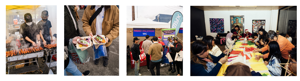 From puto bumbong-inspired desserts to smoky barbecue skewers, taho, ube creations, pandesal burgers, and artisanal bibingka, every booth had long lines — a testament to how deeply food anchors the Filipino holiday experience.