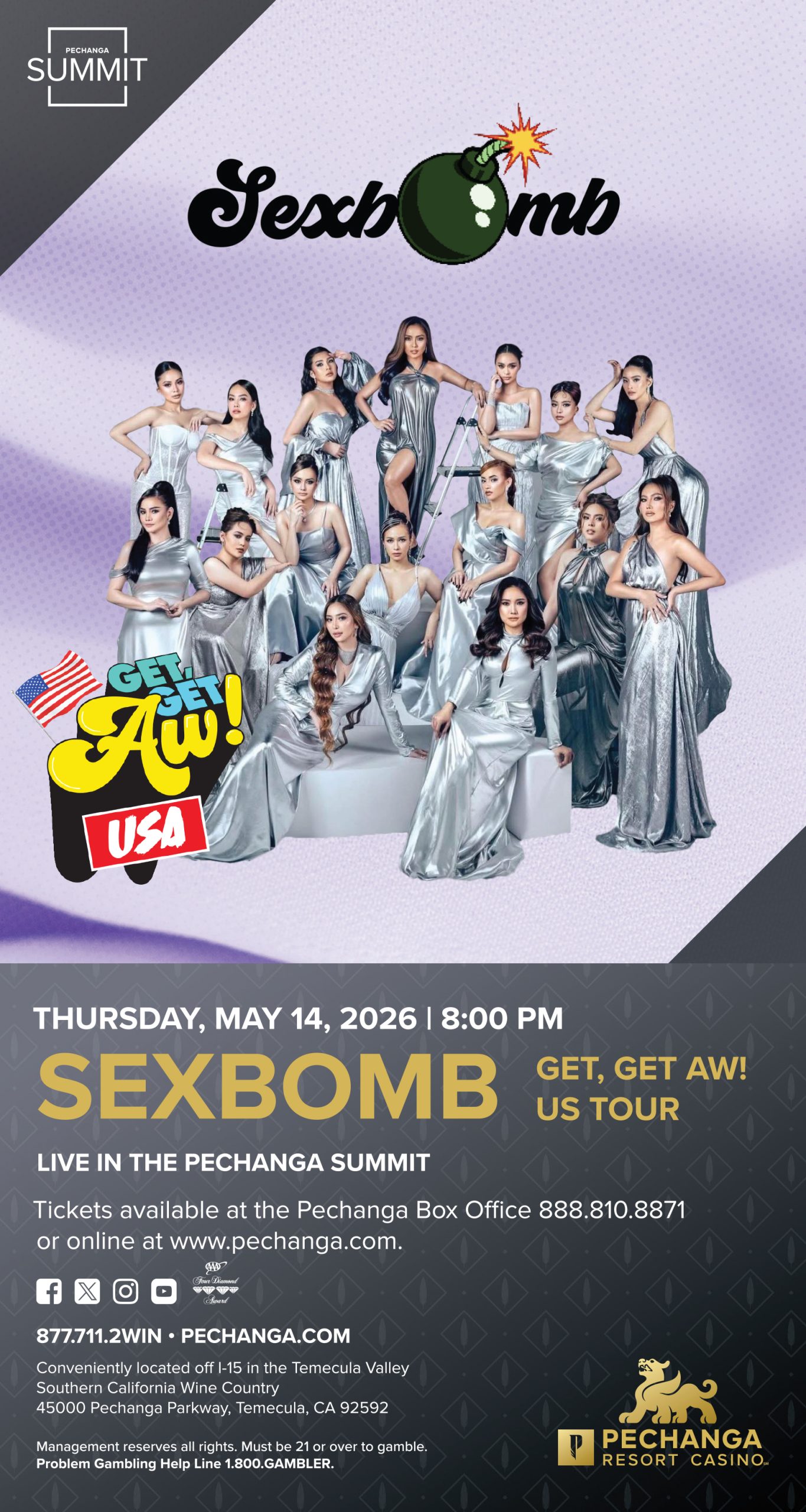 TEMECULA, Calif. — The Best-Selling Girl Group in Philippine History is bringing their electrifying choreography and iconic hits to Southern California. Pechanga Resort Casino proudly presents the “SexBomb Get, Get Aw!” U.S. Tour on Thursday, May 14 at 8 p.m. happening inside the Pechanga Summit Events Center.